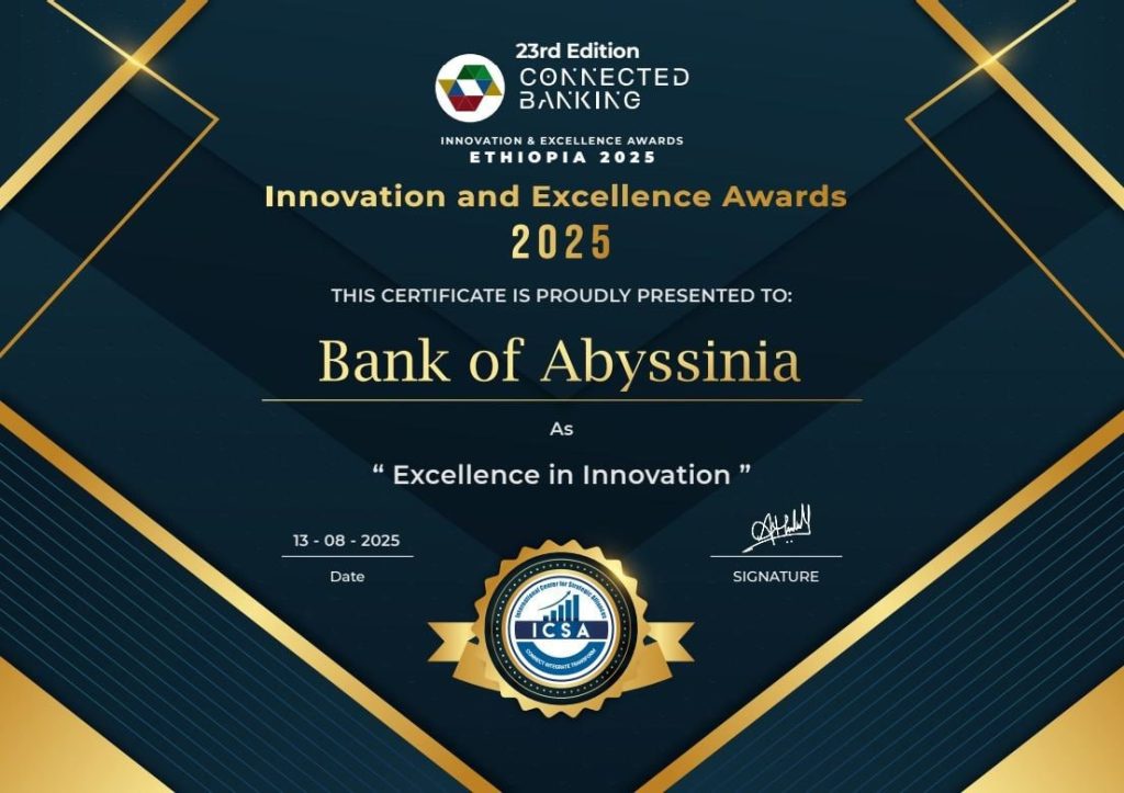 አቢሲንያ ባንክ በቅርቡ በተካሄደው 23 ኛው ኮኔክትድ ባንኪንግ ስብሰባ (23rd Edition of Connected Banking Summit – Innovation and Excellence Awards Ethiopia!) ላይ የፈጠራ ልህቀት ተሸላሚ ሆኗል።