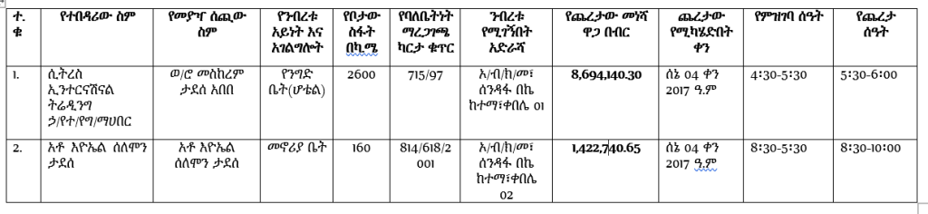 - ንብረቶቹን በሥራ ሰዓት ፕሮግራም አስይዞ መጎብኘት ወይም ማየት ይቻላል።
