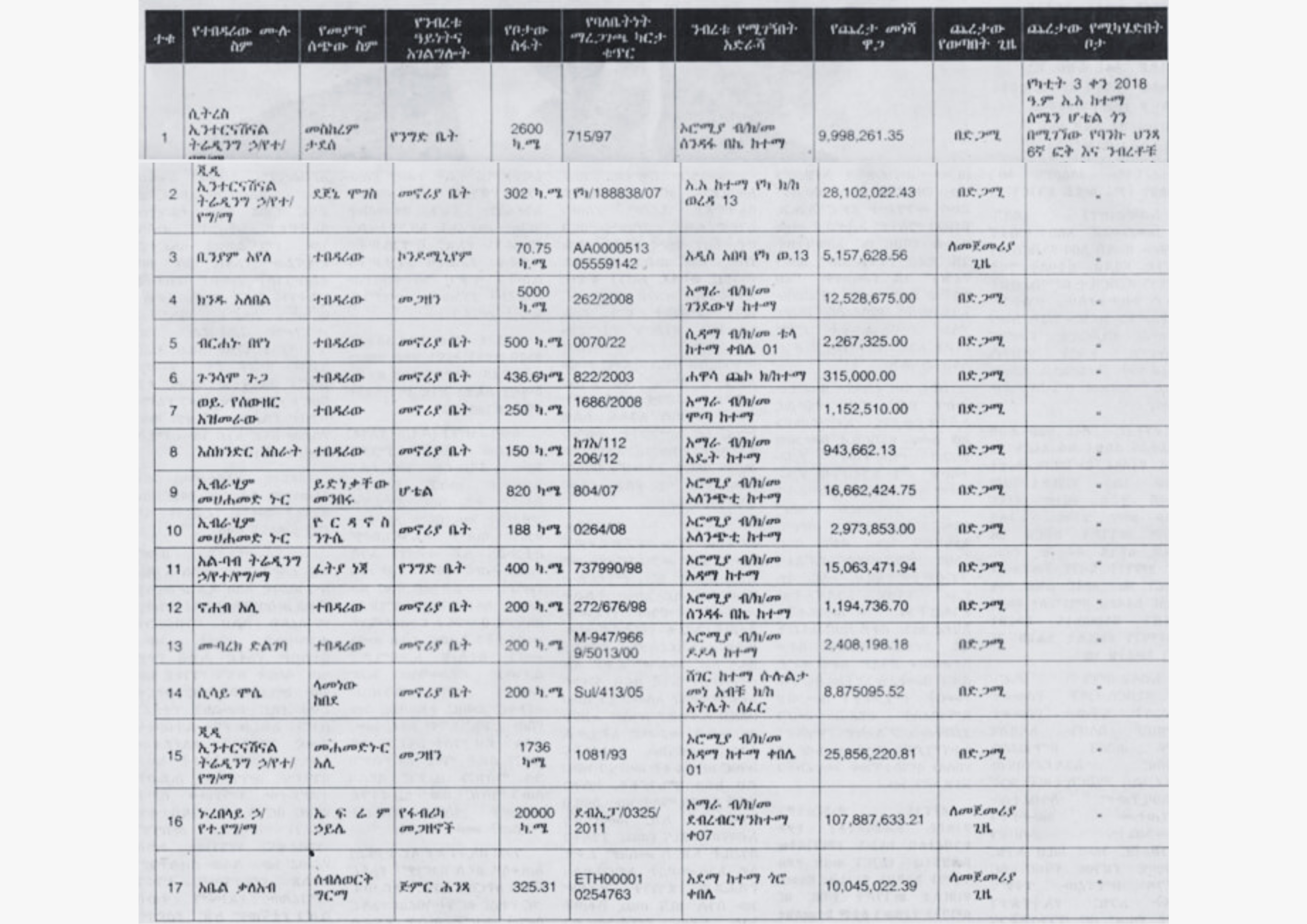 - ንብረቶቹን በሥራ ሰዓት ፕሮግራም አሲዞ መጎብኘት ወይም ማየት ይቻላል።
