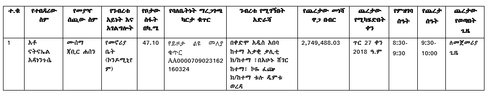 - ንብረቶቹን በሥራ ሰዓት ፕሮግራም አስይዞ መጎብኘት ወይም ማየት ይቻላል።