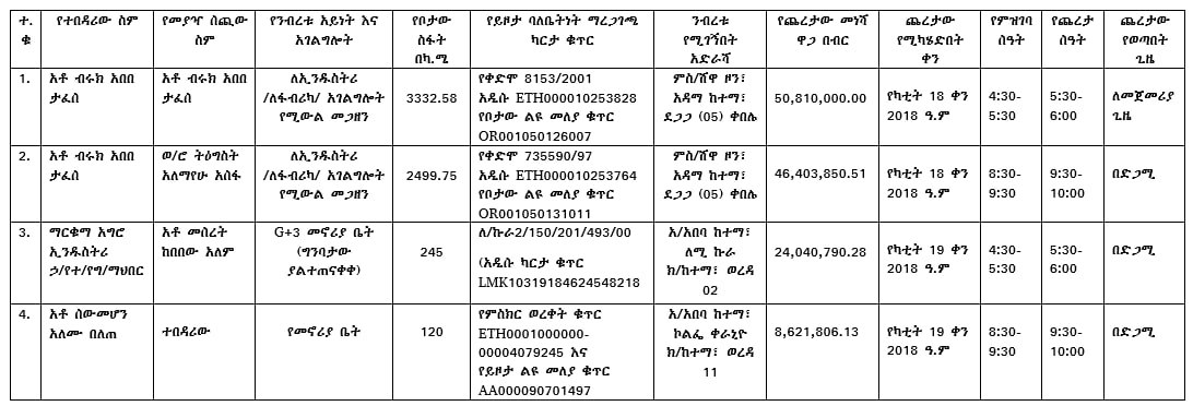 - ንብረቱን በሥራ ሰዓት ፕሮግራም አስይዞ መጎብኘት ወይም ማየት ይቻላል።