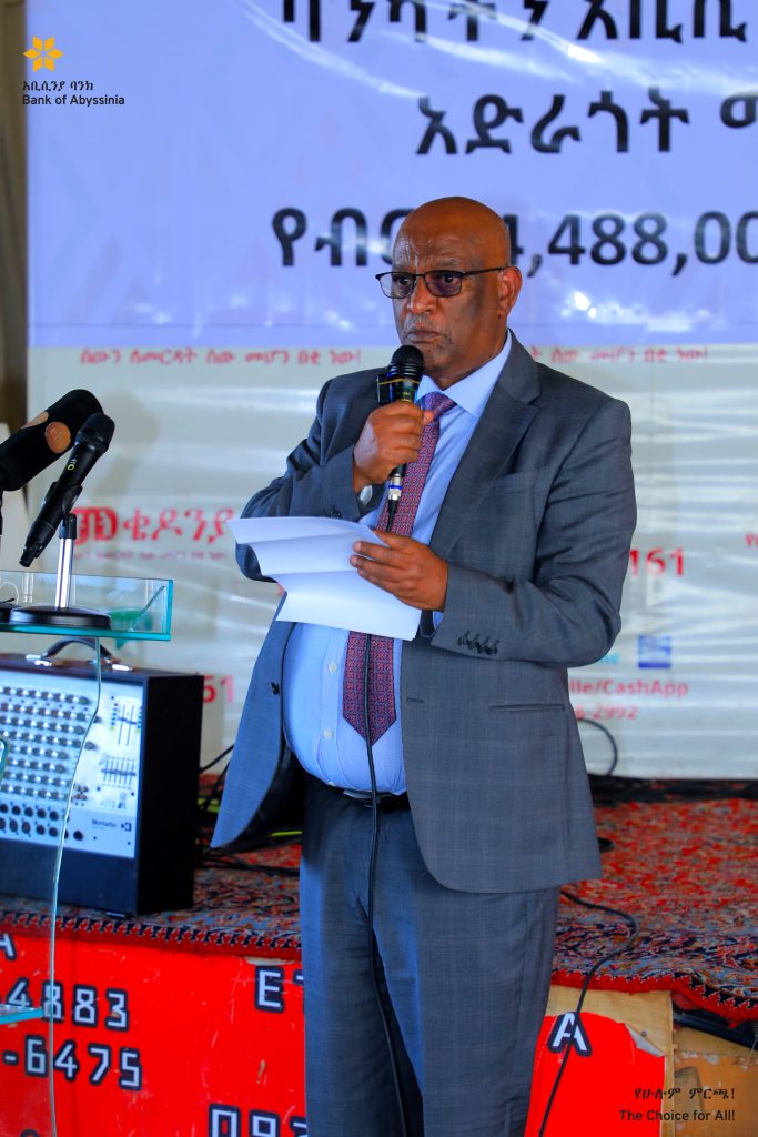 በዕለቱ ባንካችንን በመወከል በስፍራው የተገኙት የባንካችን ዋና የኮርፖሬት የሰው ሃብት ኦፊሰር አቶ ሰይፉ ቦጋለ በማዕከሉ ተዘዋውረው ባዩት ነገር መደሰታቸውን ገልጸው የ14,488,000.00 (አሥራ አራት ሚሊዮን አራት መቶ ሰማንያ ሥምንት ሺሕ) ብር የገንዘብ ድጋፉን ለማኅበሩ መሥራች እና በጎ አድራጊ አቶ ቢንያም በለጠ (የክብር ዶ/ር) አስረክበዋል።
