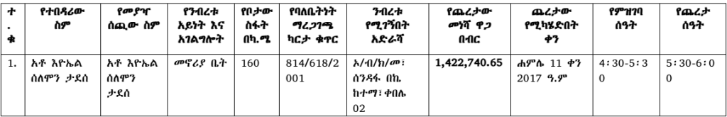 - ንብረቶቹን በሥራ ሰዓት ፕሮግራም አስይዞ መጎብኘት ወይም ማየት ይቻላል።