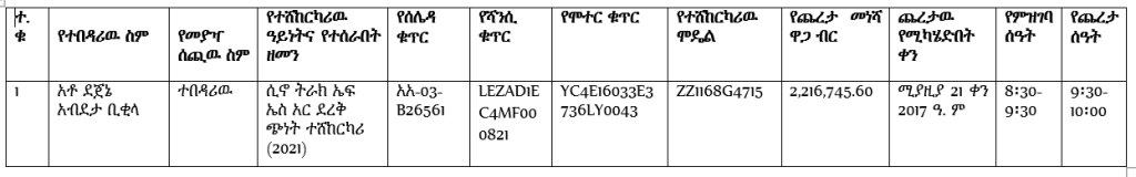 አቢሲንያ ባንክ /አ.ማ/ ለሰጠው ብድር በዋስትና የያዘዉንና በሠንጠረዡ የተመለከተውን ተሽከርካሪ በአዋጅ ቁጥር 1147/2011 መሠረት ንብረቱን ባለበት ሁኔታና አሁን በሚገኝበት ይዞታ ላይ እንዳለ በግልጽ ጨረታ አወዳድሮ ለመሸጥ ይፈልጋል፡፡ በመሆኑም ተጫራቾች ለጨረታ ከመቅረባቸው በፊት የሚከተሉትን ደንቦች መገንዘብ ይኖርባቸዋል፡፡