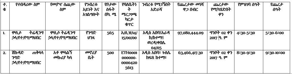 የመጀመሪያ ዙር ሐራጅ ሽያጭ ማስታወቂያ