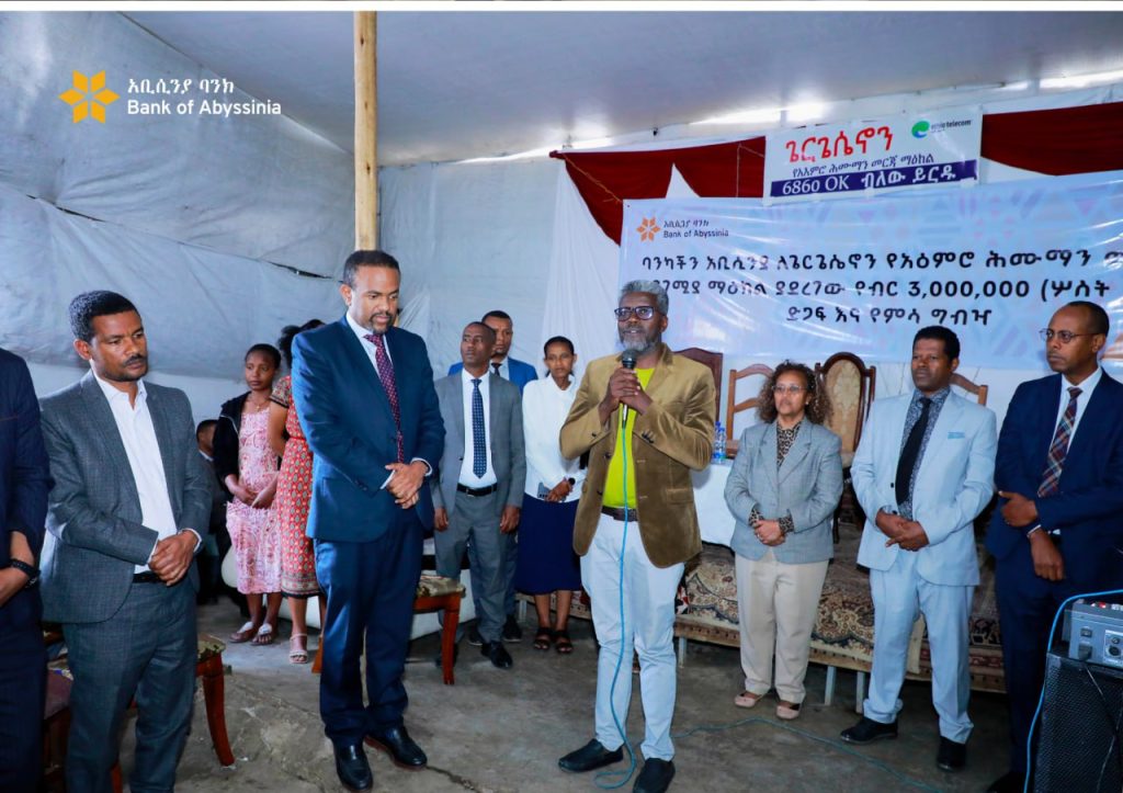 ባንካችን አቢሲንያ ዛሬ የካቲት 25 ቀን 2018 ዓ.ም ለጌርጌሴኖን የአዕምሮ ሕሙማን መርጃ እና ማገገሚያ ማዕከል የህንጻ ግንባታ ዕገዛ ይውል ዘንድ የ 3 ሚሊዮን ብር ድጋፍ አደረገ።