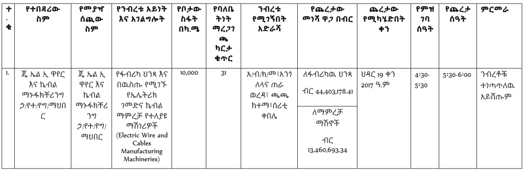 - ንብረቶቹን በሥራ ሰዓት ፕሮግራም አስይዞ መጎብኘት ወይም ማየት ይቻላል።