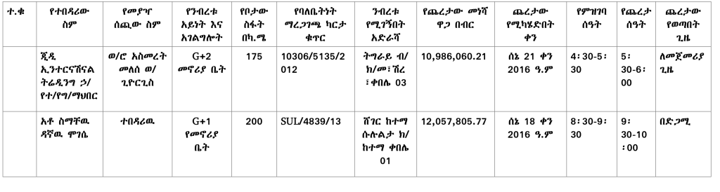 - ንብረቱን በሥራ ሰዓት ፕሮግራም አስይዞ መጎብኘት ወይም ማየት ይቻላል።