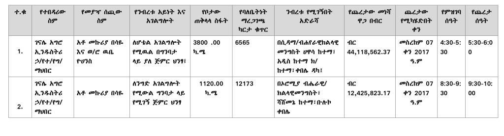 - በባንኩ የብድር ፖሊሲ እና መመሪያ መሠረት መስፈርቱን ለሚያሟላ የጨረታው ከፍተኛ ዋጋ አቅራቢ /አሸናፊ/ ባንኩ ከፊል ብድር ሊሰጥ ይችላል።