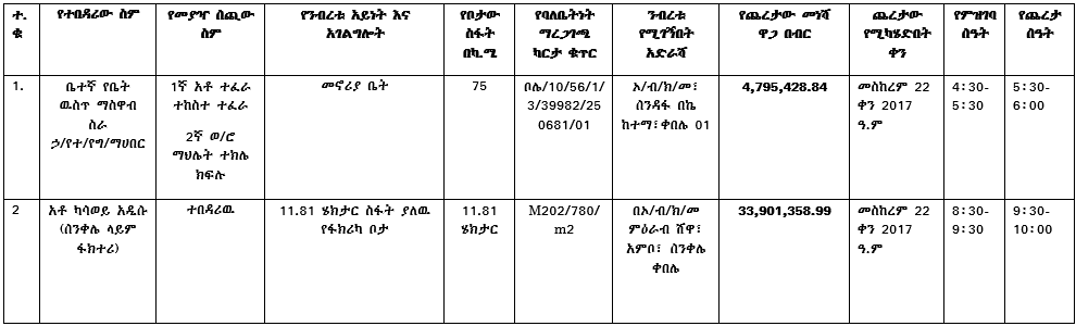 - ንብረቶቹን በሥራ ሰዓት ፕሮግራም አስይዞ መጎብኘት ወይም ማየት ይቻላል።
