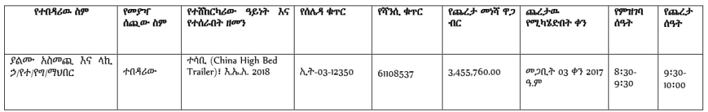 - በባንኩ የብድር ፖሊሲ እና መመሪያ መሠረት መስፈርቱን ለሚያሟላ የጨረታው ከፍተኛ ዋጋ አቅራቢ /አሸናፊ/ ባንኩ ከፊል ብድር ሊሰጥ ይችላል።