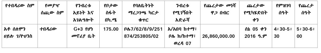 - ንብረቱን በሥራ ሰዓት ፕሮግራም አስይዞ ለመጎብኘት ወይም ለማየት ይቻላል።